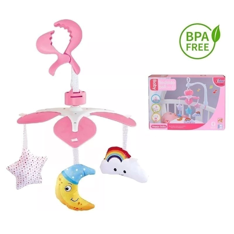 Pieza colgante de cuna de bebé. Este hermoso móvil en color rosa para niña ayudan a que tu bebé se relaje y al mismo tiempo se estimule de forma adecuada para su desarrollo.